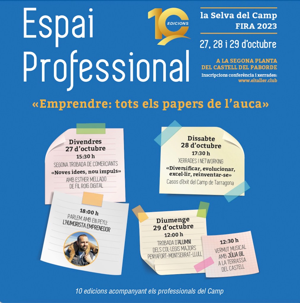 Qui ens havia de dir, aquell any 2014, que la iniciativa de fer un espai per als professionals del Camp a la Fira de la Selva s’allargaria fins al 2023! Oh, i que encara no s’ha acabat, eh! La Fira de la Selva, espai per excel·lència d’intercanvi (i no només comercial) ha incorporat en els últims anys un espai per a un dels sectors més dinàmics i innovadors de la nostra societat: l’emprenedoria. S’adapta amb això als nous temps, sí, però, de fet, recull l’esperit de més de 500 anys d’existència.